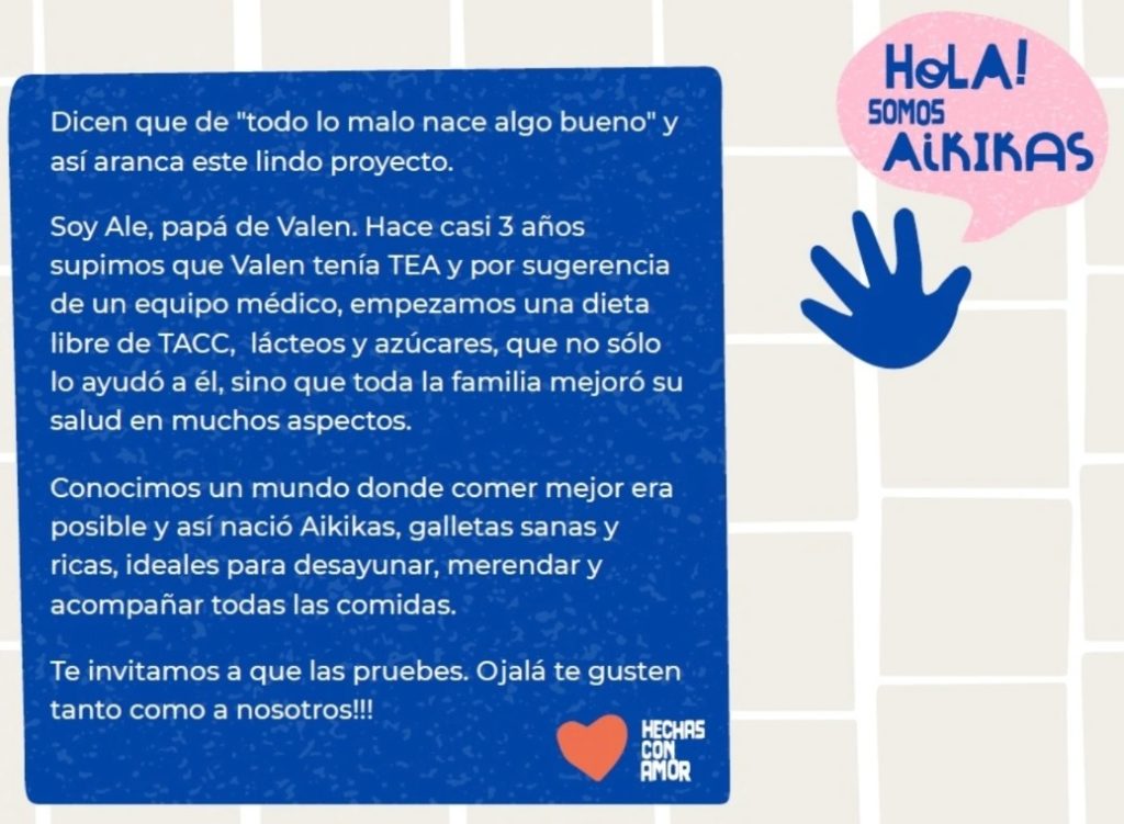 Aikikas es un emprendimiento familiar que se ha consolidado en Argentina gracias a su enfoque en ofrecer galletas saludables y nutritivas. Desde su fundación, hemos logrado llegar a un amplio público que busca alternativas sanas y sabrosas, y nuestras galletas, hechas con ingredientes naturales, son ideales para quienes quieren cuidar su alimentación sin renunciar al placer del sabor.